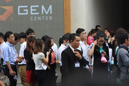Từ sáng sớm, hàng trăm bạn trẻ đã tập trung trước Trung tâm Hội nghị GEM Center (8 Nguyễn Bỉnh Khiêm, quận 1, TPHCM) để làm thủ tục tham dự cuộc gặp Tổng thống Mỹ Obama.