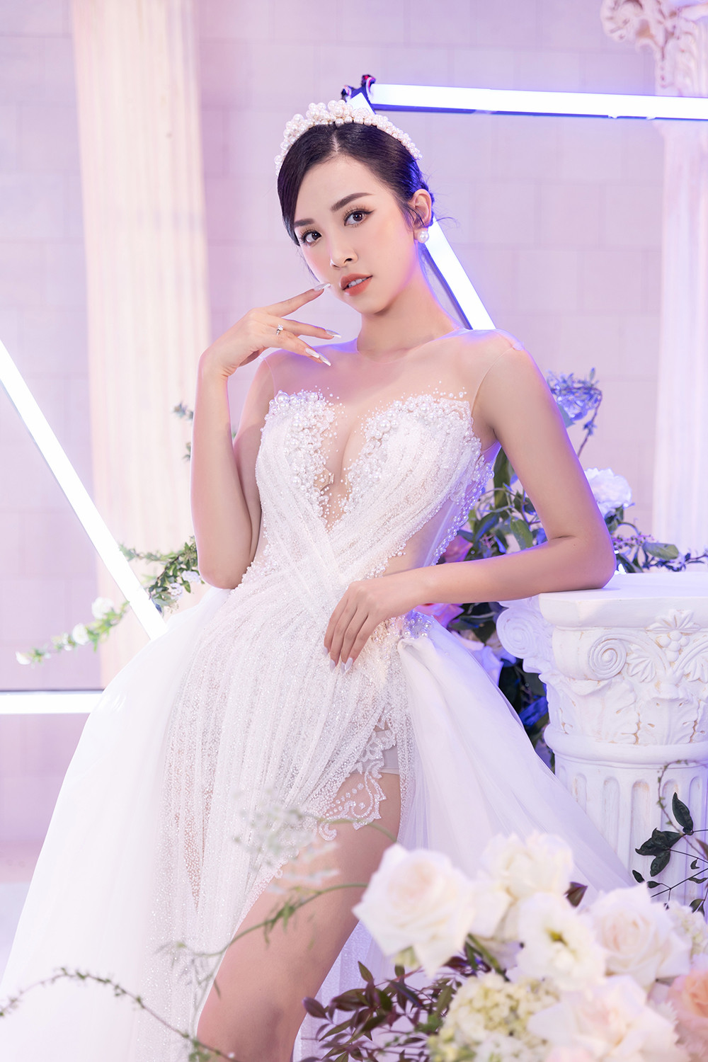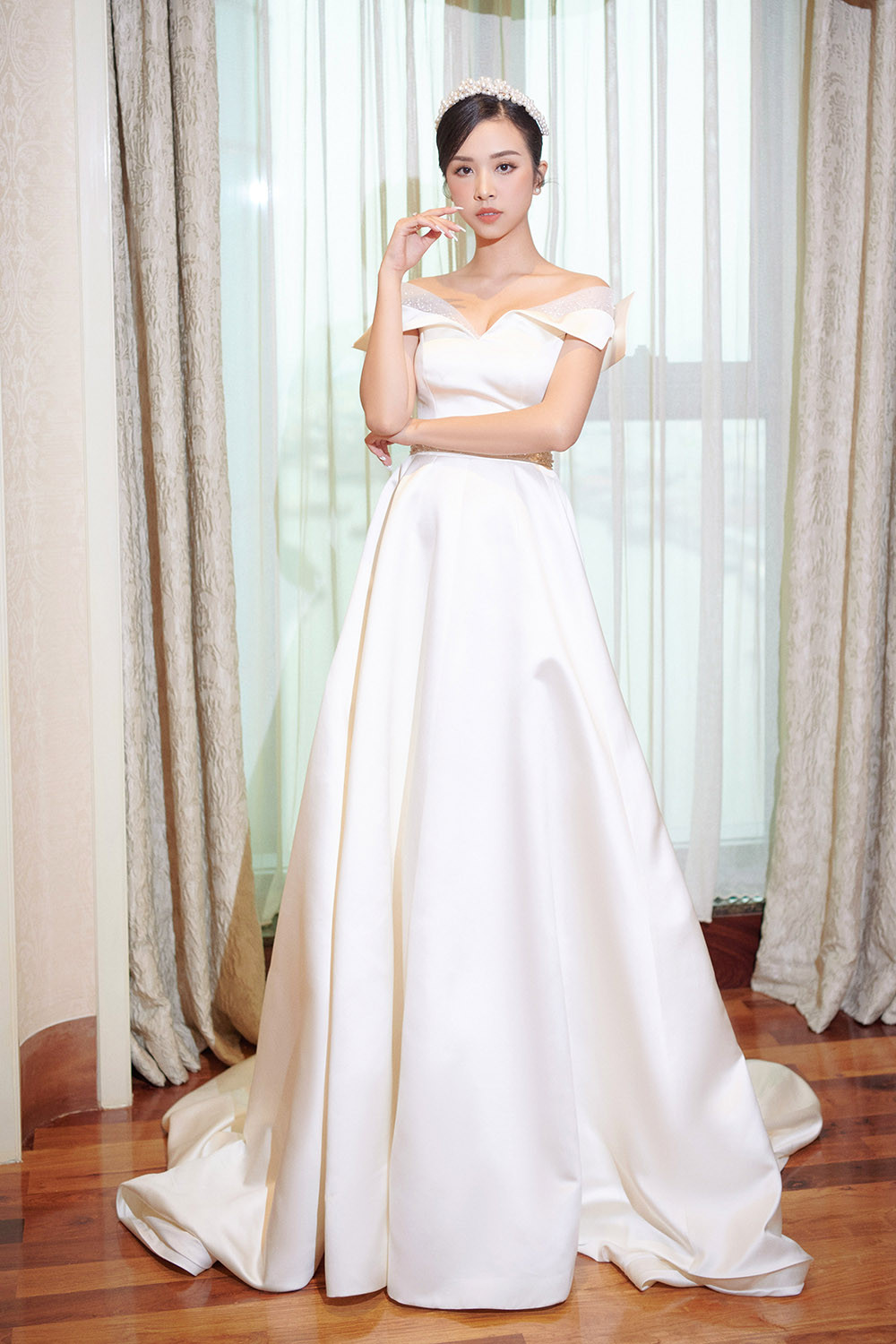 Trong ngày lễ đặc biệt của mình, Á hậu Thuý An vô cùng xinh đẹp nổi bật với những chiếc váy cưới được thiết kế khá ấn tượng.