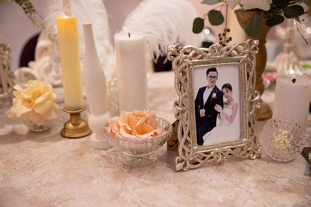 Những tượng bán thân được dàn xếp xung quanh cùng với hoa hồng, nến và ảnh cưới của đôi vợ chồng khiến cho khách mời vô cùng thích thú khi đến dự tiệc.