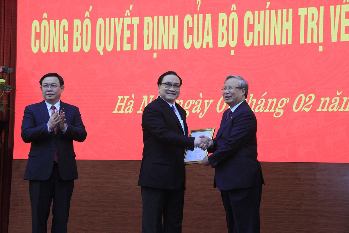 Nhậm chức Bí thư Thành ủy Hà Nội chiều 7/2, ông Vương Đình Huệ bày tỏ mong muốn nêu cao tinh thần đoàn kết, xây dựng Thủ đô phát triển bền vững. Ảnh: Trường Phong