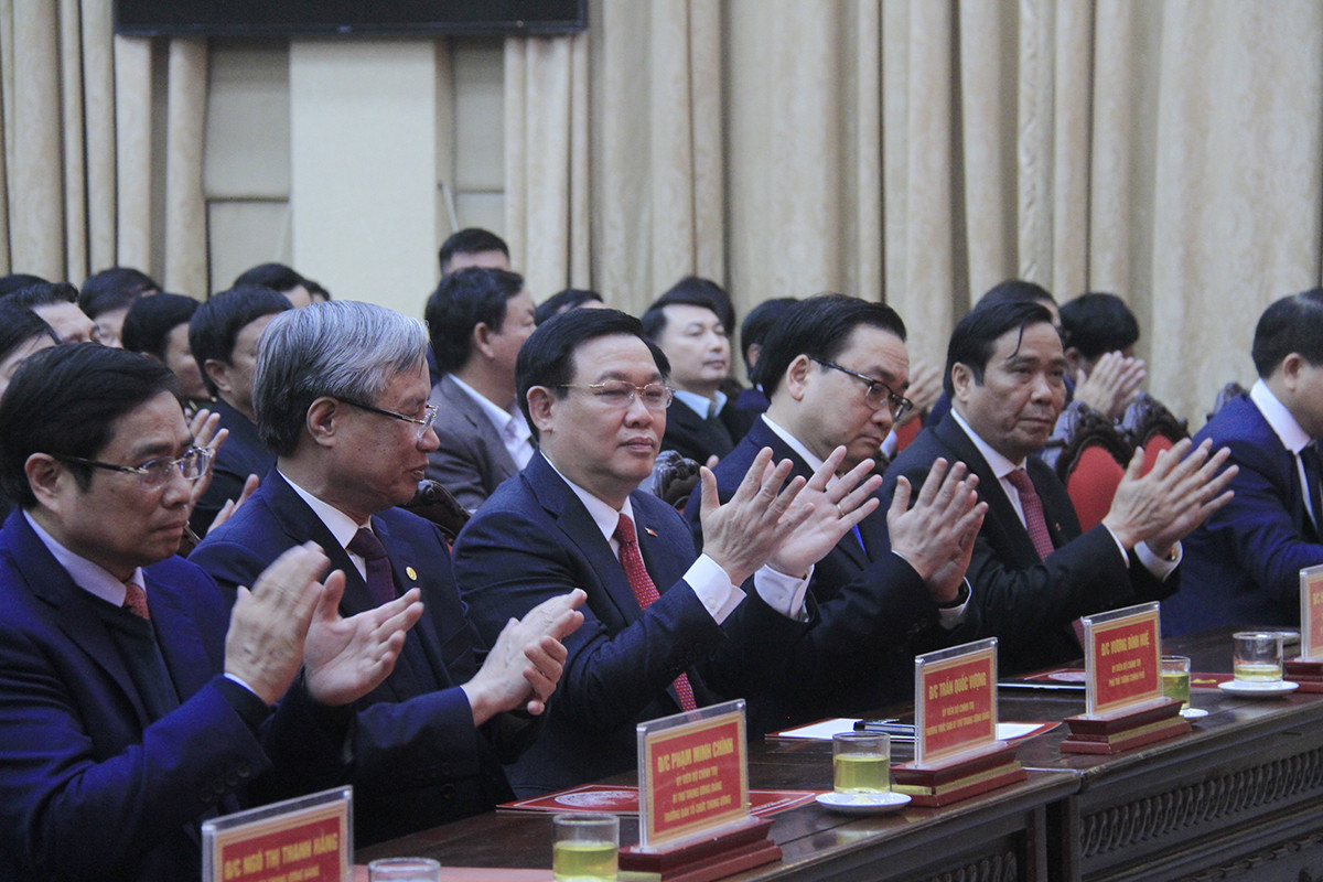Tham dự buổi lễ có Thường trực Ban Bí thư Trần Quốc Vượng, Trưởng ban Tổ chức T.Ư Phạm Minh Chính cùng nhiều đại biểu T.Ư và Hà Nội. Ảnh: Trường Phong