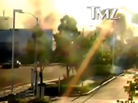 Trong đoạn clip lấy từ camera giám sát ở một tòa nhà cao tầng gần nơi xảy ra tai nạn, chiếc Porsche sau khi đâm đã nổ tung, lửa nhanh chóng bốc lên, khói đen bao trùm một góc phố.
