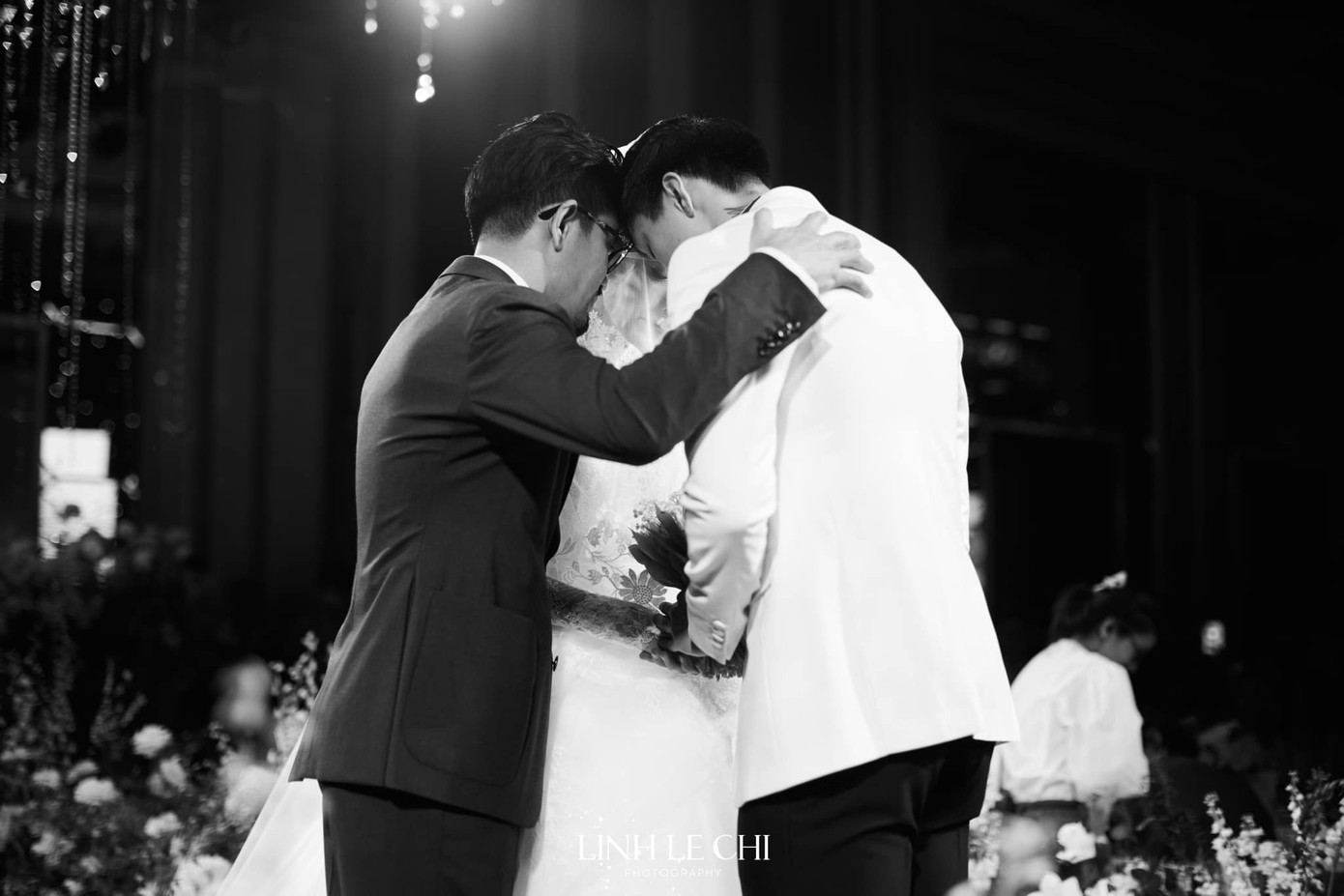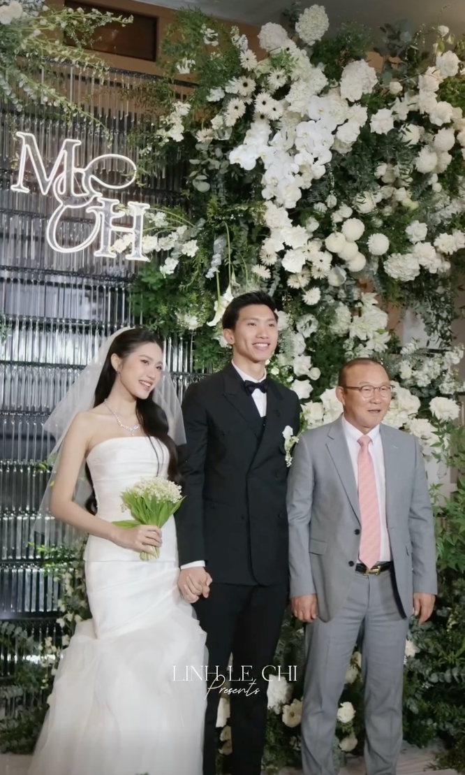 Đáng chú ý, trong giây phút được bố dẫn vào lễ đường trao tay cho chồng, Doãn Hải My đã bật khóc vì xúc động. Đoàn Văn Hậu lau những giọt nước mắt cho người phụ nữ mà anh yêu thương, nguyện gắn bó tới đầu bạc răng long.