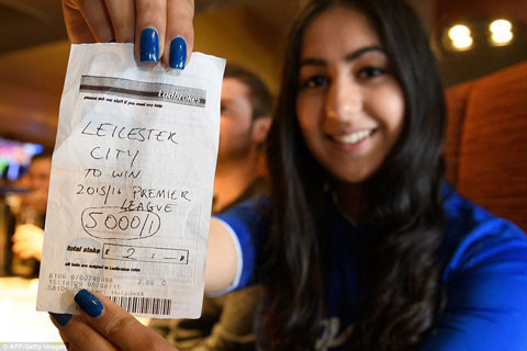Nữ sinh 20 tuổi cũng ở Leicester, Karisma Kapoor thì bỗng dưng có 10.000 bảng đưa cả nhà đi du lịch Hè này sau khi rủ bà dì Simmi của cô chung nhau 2 bảng đặt cược “gọi là ủng hộ tinh thần tướng mới Claudio Ranieri” hồi tháng 8 năm ngoái.