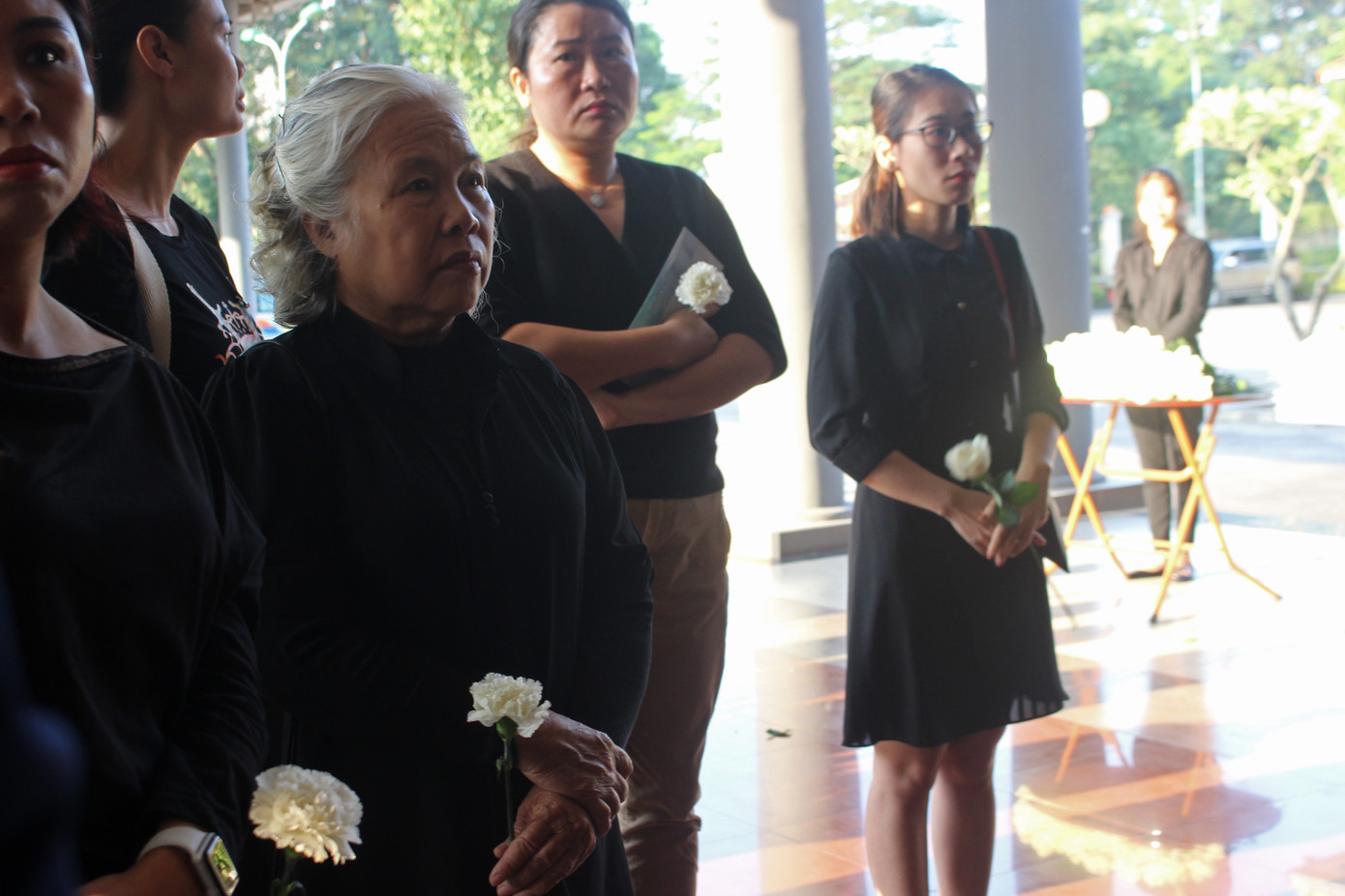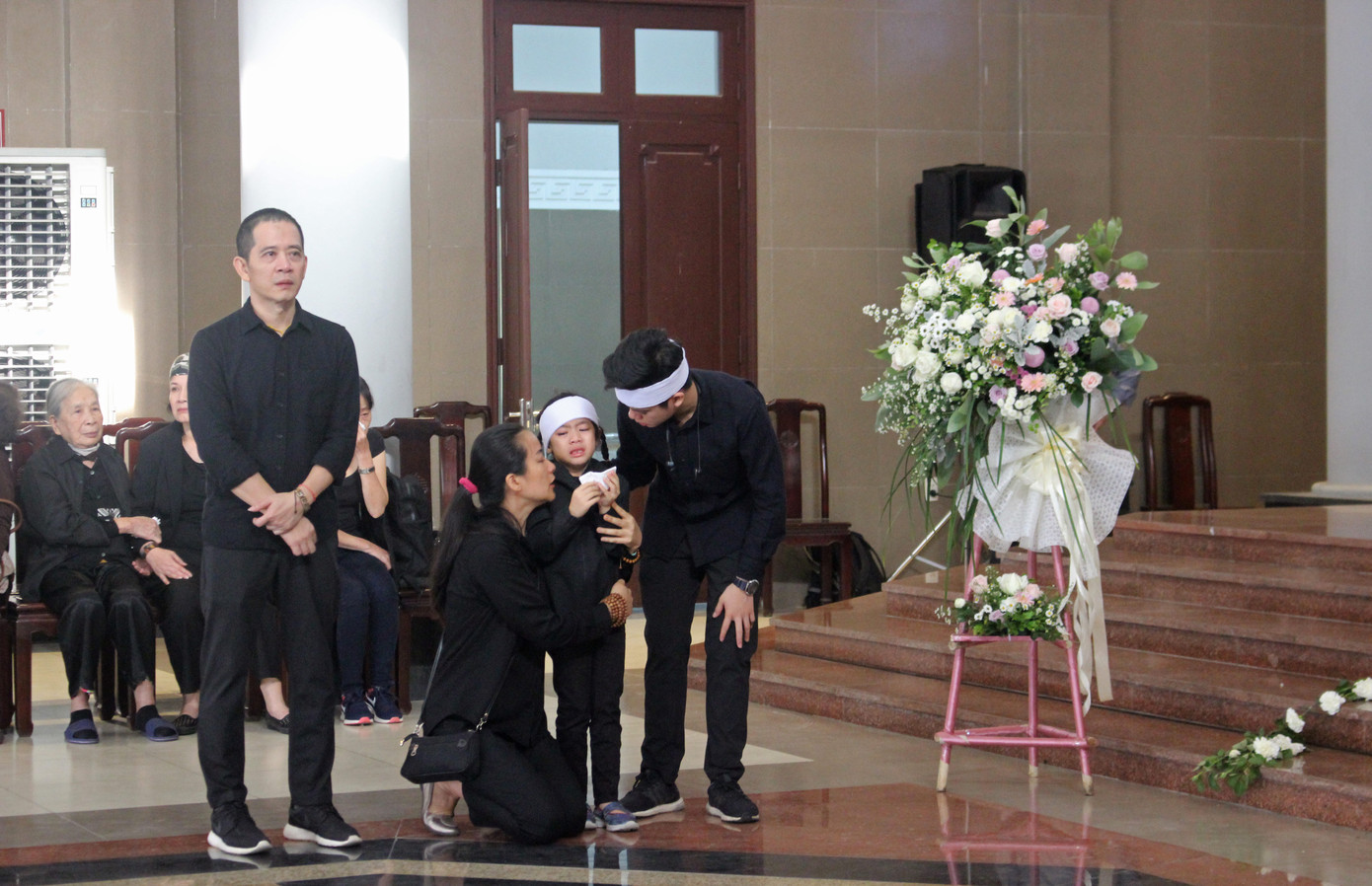 Diễn viên Khánh Huyền mặc dù bận rộn với lịch quay nhưng vẫn tranh thủ bay ra Hà Nội, có mặt trong suốt quá trình diễn ra lễ tang để động viên tinh thần người anh thân thiết.