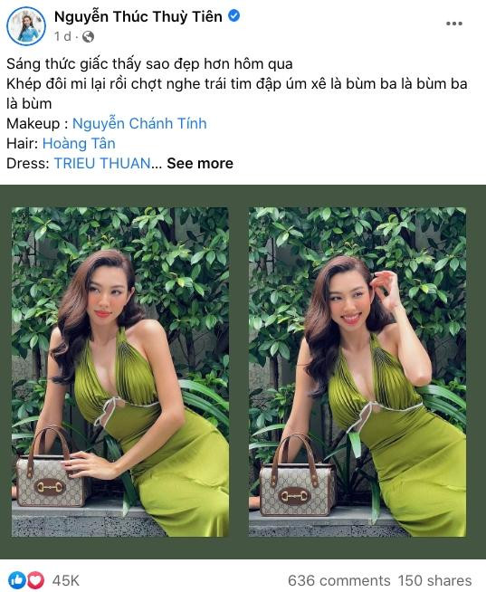Khác với hình ảnh sang chảnh trong loạt hình, Hoa hậu Thùy Tiên không hổ danh là Miss Biểu cảm, cô đăng tải caption vô cùng buồn cười: “Sáng thức giấc thấy sao đẹp hơn hôm qua. Khép đôi mi lại rồi chợt nghe trái tim đập úm xê là bùm ba là bùm ba là bùm…”