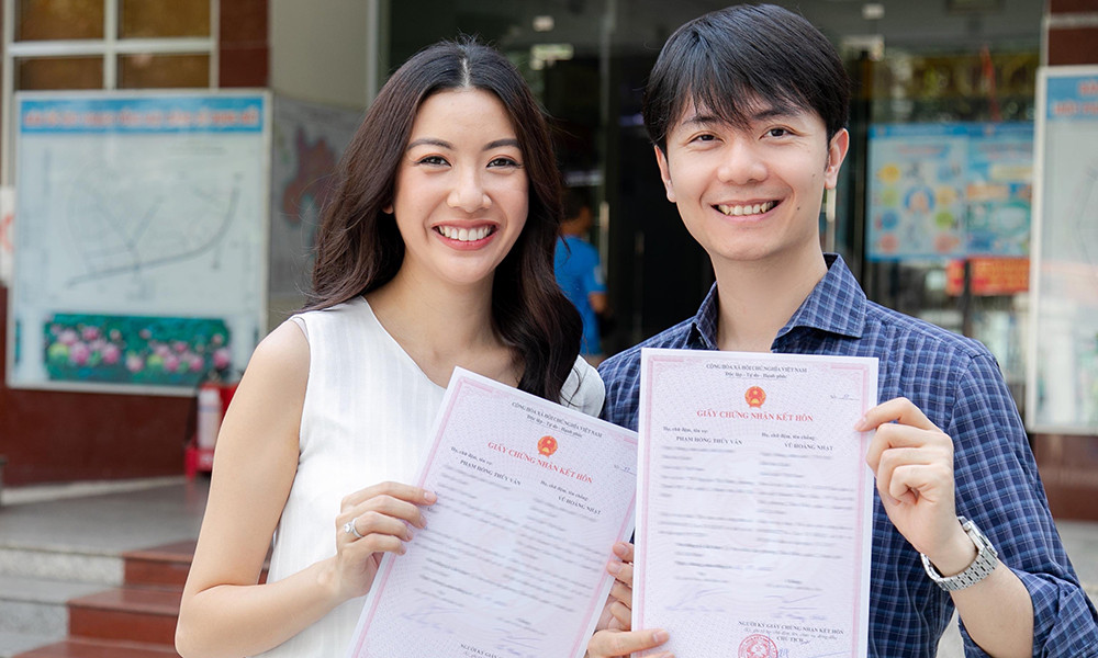Mới đây, Á hậu Thúy Vân và bạn trai doanh nhân Nhật Vũ đã làm thủ tục đăng ký kết hôn tại Phường Thảo Điền, Quận 2.