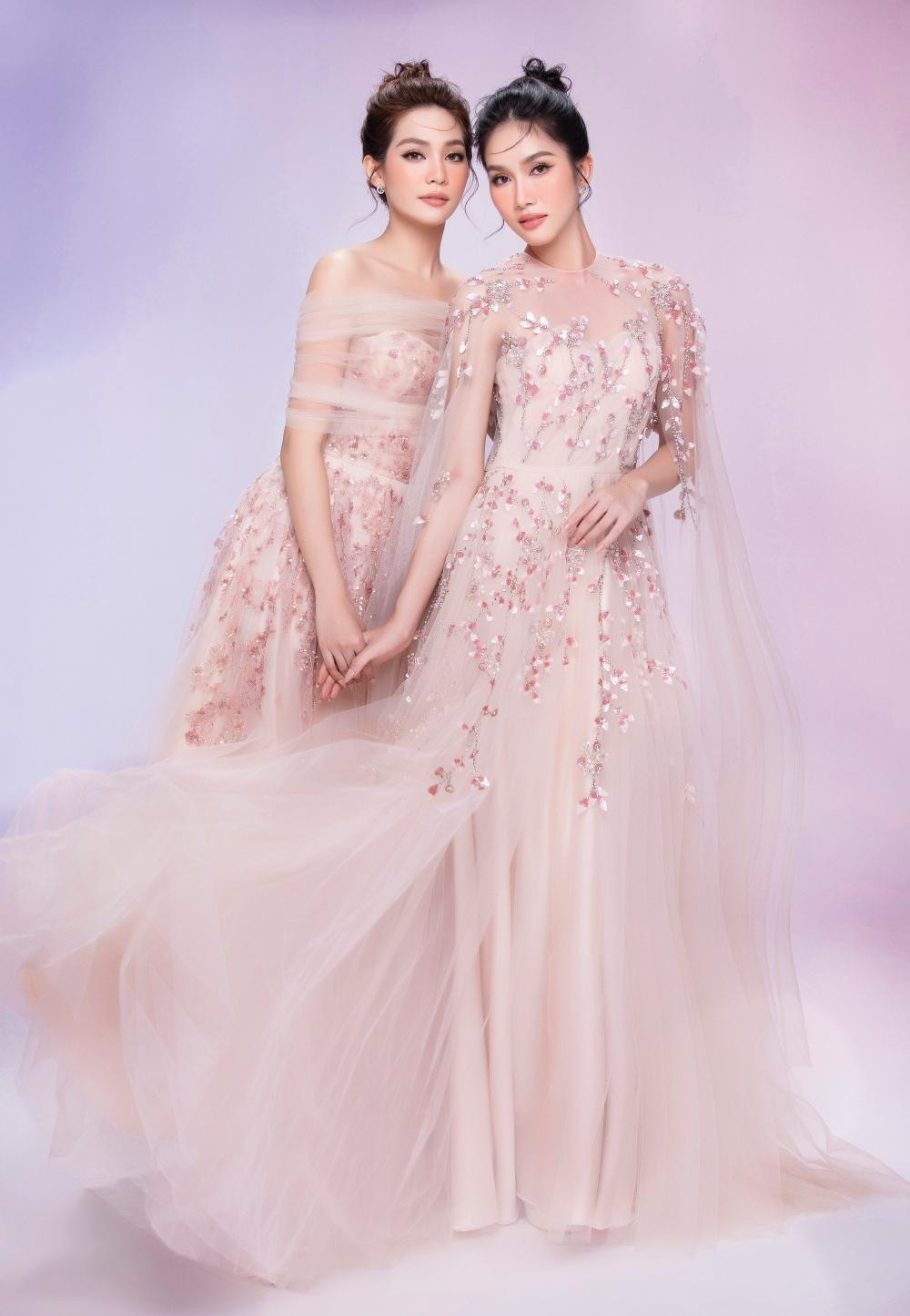 Ở bộ ảnh thứ hai, Á hậu Phương Anh cùng Miss International 2019 hóa thành những nàng thơ vô cùng ngọt ngào. Trong thiết kế vải voan vô cùng mềm mại, kết hợp với sự đính kết kỳ công với những cánh hoa trên thân áo.