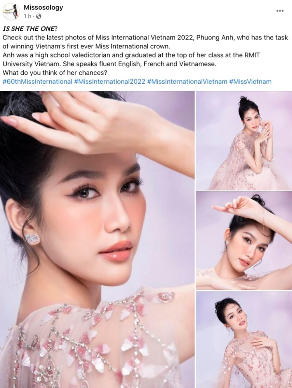 Trong đó ở post gần đây nhất, Missosology còn dự đoán liệu Á hậu Phương Anh có thể chính là THE ONE (ám chỉ người đẹp giành vương miện) của cuộc thi Miss International 2022 tới đây.