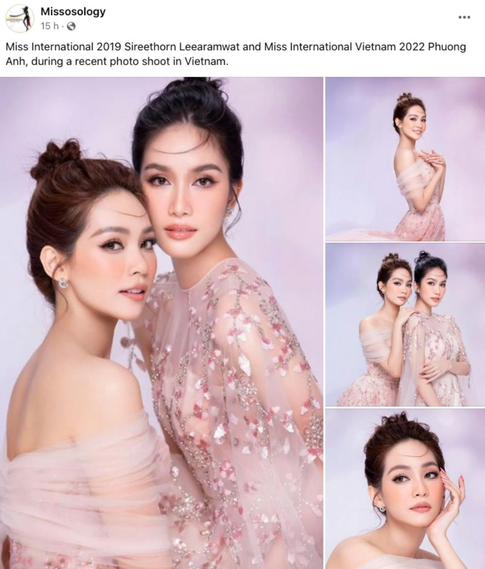 Mới đây, Á hậu Phương Anh vừa hé lộ những hình ảnh đẹp ngọt ngào của cô chụp cùng với đương kim Miss International 2019 Sireethorn Leearamwat đến từ Thái Lan. Đây cũng là một trong những bộ ảnh đầu tiên của Phương Anh trước thềm đến với đấu trường Miss International 2022.