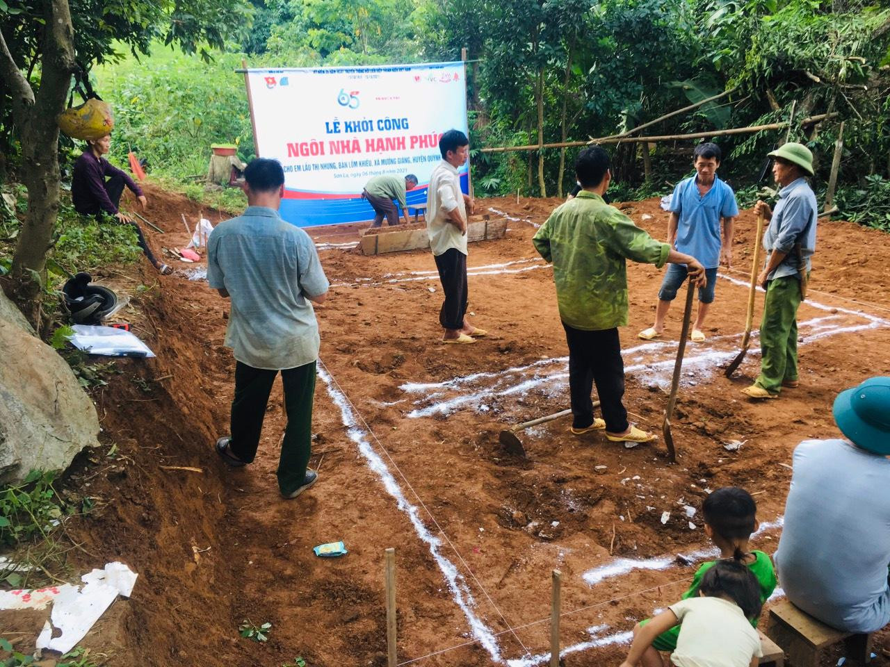 Em Lầu Thị Nhung, Dân tộc Mông, học sinh lớp 7 trường THCS xã Mường Giàng cùng em gái Lầu Thị Sinh học sinh lớp 3 trường Tiểu học xã Mường Giàng, huyện Quỳnh Nhai. Hai em mồ côi bố từ nhỏ, thuộc gia đình hộ nghèo đặc biệt khó khăn. Khi được các anh chị Hội viên, thanh niên đến khởi công ngôi nhà, Lầu Thị Nhung rưng rưng nước mắt xúc động nói đây là ước mơ lớn nhất của ba mẹ con em, từ ngày bố mắc bệnh hiểm nghèo mất sớm, hai chị lấy chồng xa, mẹ thường xuyên ốm đau, cuộc sống hết sức khó khăn, nhưng hai chị em luôn cố gắng vươn lên trong cuộc sống, nêu cao tinh thần vượt khó. Quãng đường từ nhà đến trường gần chục cây số đường núi gập ghềnh nhưng em chưa nghỉ buổi học nào, 8 năm liền đạt danh hiệu học sinh khá giỏi. Em rất mong đến ngày khánh thành ngôi nhà để ba mẹ con em được sống trong một mái nhà khang trang, hạnh phúc, cá nhân em sẽ được viết tiếp giấc mơ học tập của mình.