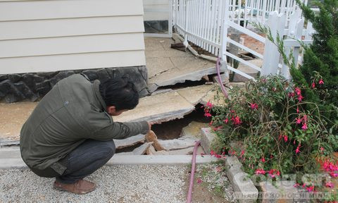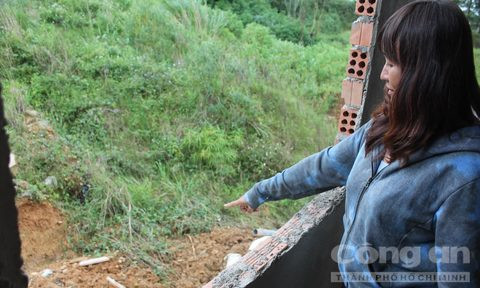 Ngoài căn nhà hai vợ chồng Việt kiều Pháp, căn nhà đang trong quá trình xây dựng của bà Nguyễn Thúy Phượng (quê TP. HCM) cũng bị ảnh hưởng không nhỏ. Ta luy sau nhà được xây cao khoảng 3 mét và kiên cố bị sập hoàn toàn. Hiện công trình xây dựng căn nhà tạm ngưng.