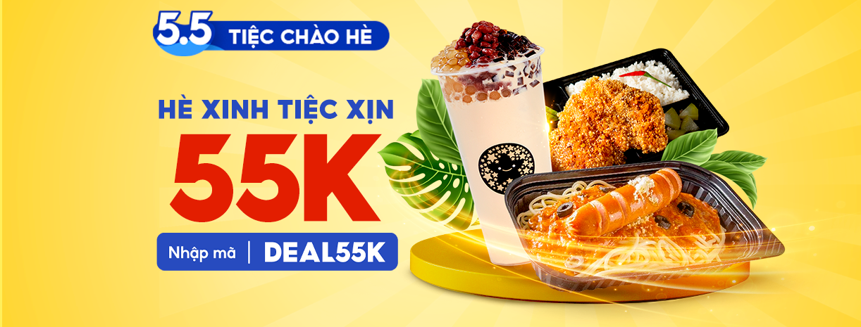 Bộ sưu tập Combo chỉ 55k sẽ chiêu đãi các tín đồ ẩm thực những thực đơn hấp dẫn chỉ với 55k. Người dùng có thể sử dụng combo này để chiêu đãi mình hoặc bạn bè một bữa tiệc xịn sò đúng chất hè, chỉ cần nhập mã DEAL55K sẽ được giảm 20k cho đơn từ 75k.