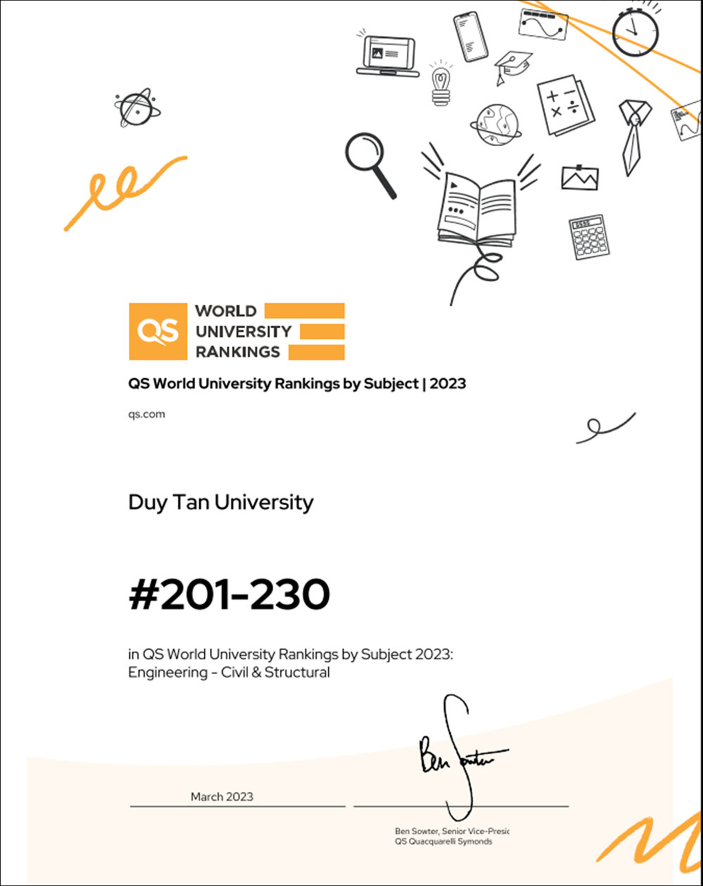 Ở bảng xếp hạng QS World Rankings by Subjects 2023, ĐH Duy Tân có nhiều lĩnh vực lần đầu tiên được xếp hạng quốc tế. Trong đó, có lĩnh vực Kiến trúc - Xây dựng nằm ở Top 201-230 trên bảng xếp hạng này. Điều này càng thêm ghi nhận nỗ lực trong hoạt động nâng cao chất lượng đào tạo, xây dựng cơ sở vật chất đạt chuẩn ở từng ngành học để mang đến cho người học nền tảng kiến thức lý thuyết bên cạnh nhiều kỹ năng thực tế.