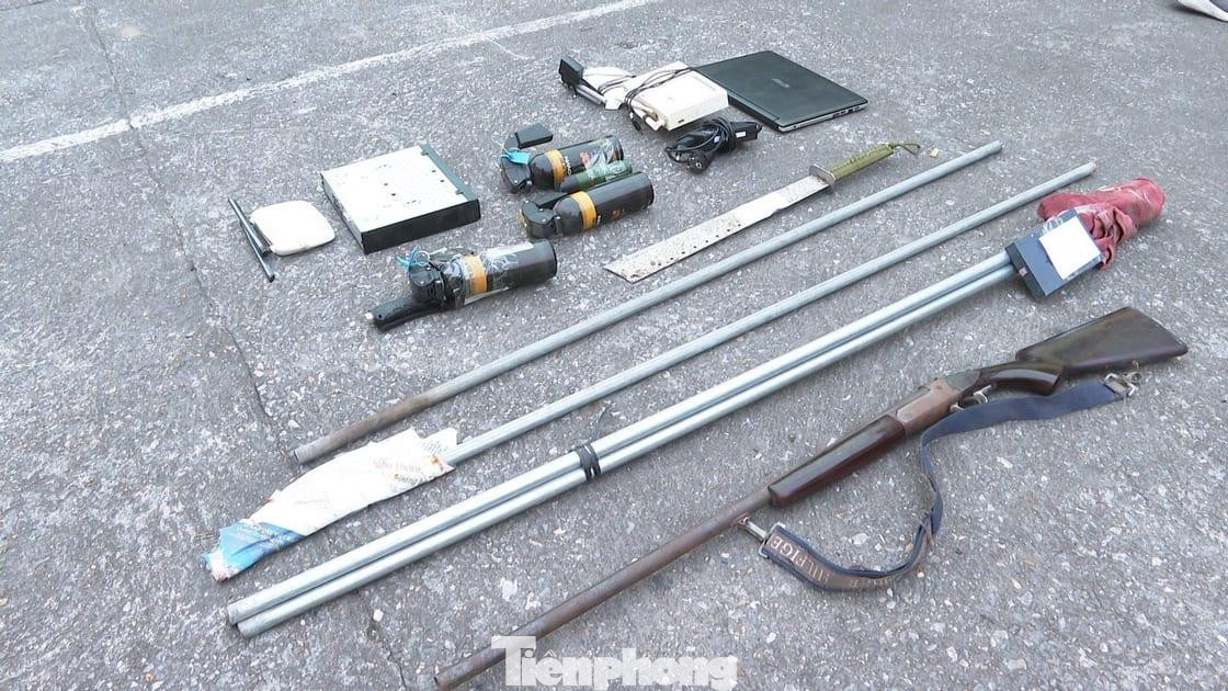 Tại thời điểm khám xét, công an thu giữ 7 xe ôtô các loại (trong đó có 2 xe sang hiệu Porsche và BMW), 5 bộ máy vi tính, 2 máy tính bảng, 12 điện thoại di động các loại, 8 thiết bị phát wifi, 3 két sắt, 1 khẩu súng săn, 20 đao kiếm các loại…