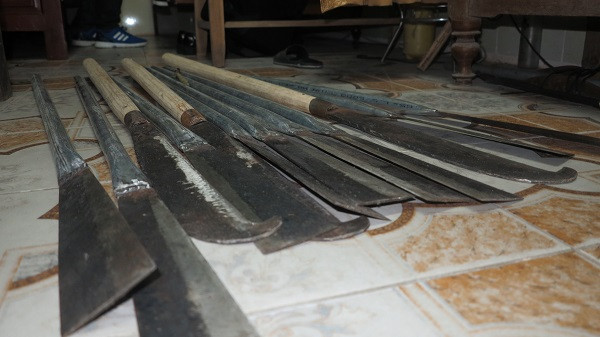Thấy đồng bọn bị khống chế, Long và Hoàng trở về nhà mang theo hai bao tải chứa 9 cây rựa dài hơn một mét cùng 3 dao nhọn, đồng thời kéo theo nhóm hơn 10 người tới hiện trường hò hét kích động yêu cầu công an thả người. Nhóm này tiếp tục cầm rựa đòi xông vào tấn công nhóm đối thủ.