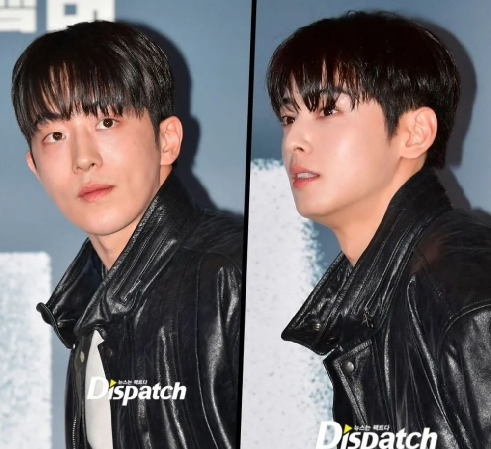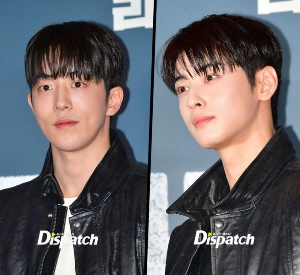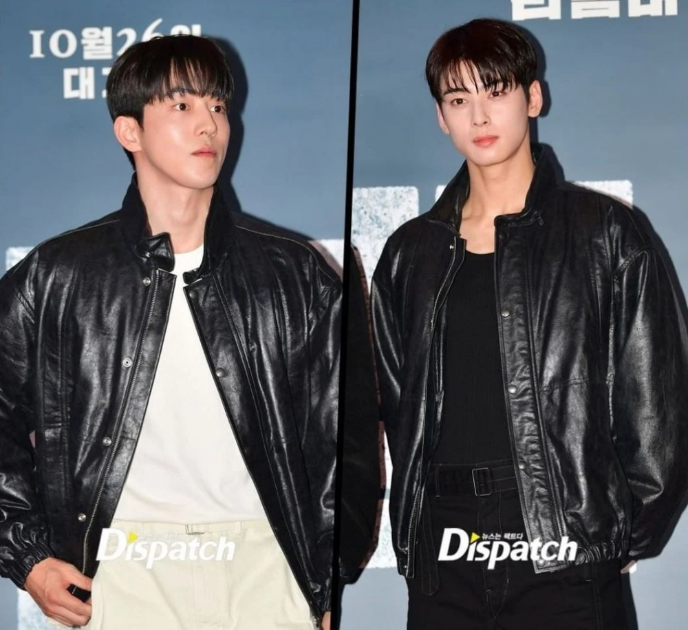 Không chỉ là chiếc áo khoác, mà cách phối đồ hay thậm chí là kiểu tóc và trang điểm của Nam Joo Hyuk cùng Cha Eun Woo ngày hôm đó cũng có hơi hướng giống nhau. Điểm khác biệt duy nhất có chăng chỉ là Nam Joo Hyuk lựa chọn áo phông trắng mặc bên trong, về phía Cha Eun Woo, anh chàng theo hình tượng "all black".
