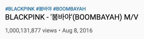 MV BOOMBAYAH của BLACKPINK được chọn giờ và ngày phát hành cực đẹp: 8 giờ tối (giờ Hàn Quốc) ngày 8/8/2016. Và sau 4 năm, 2 tháng, 4 ngày và 12 giờ, MV này đã đạt được con số tỉ view.
