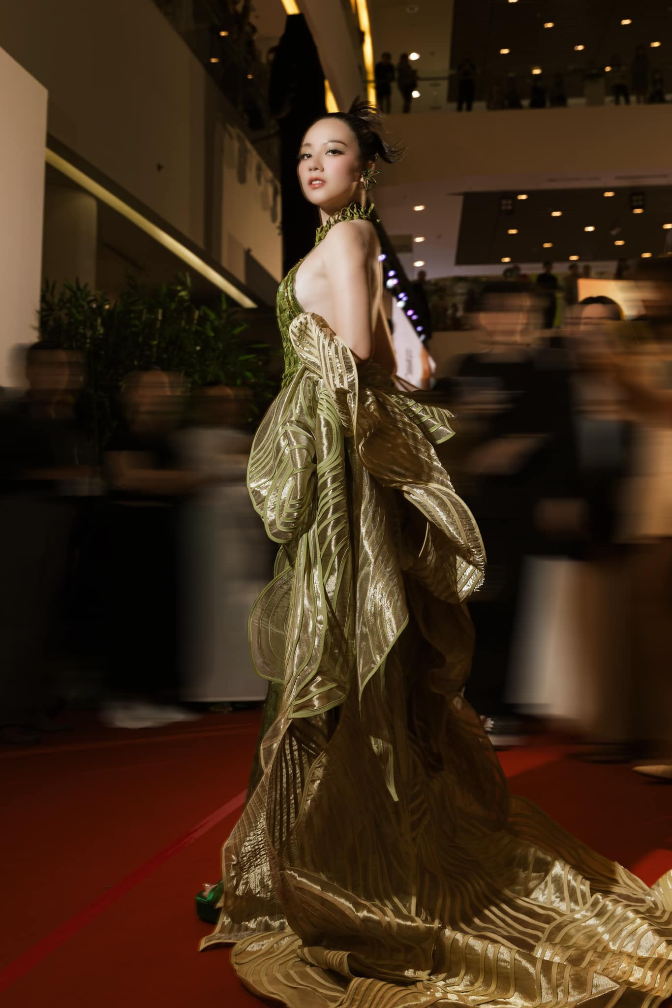 Đảm nhận vai diễn "đẹp mà ác", nữ diễn viên Gạo Nếp Gạo Tẻ không chỉ lung linh trên màn ảnh mà còn nổi bật tại thảm đỏ các sự kiện của Đất Rừng Phương Nam. Băng Di gây ấn tượng với gu thời trang sang trọng, quyến rũ khi diện bộ váy xanh cổ yếm kết hợp cùng trang sức cùng tông màu. Thiết kế do chính tay nữ diễn viên chọn lựa được nhận xét là "over hợp" với chủ đề bộ phim.