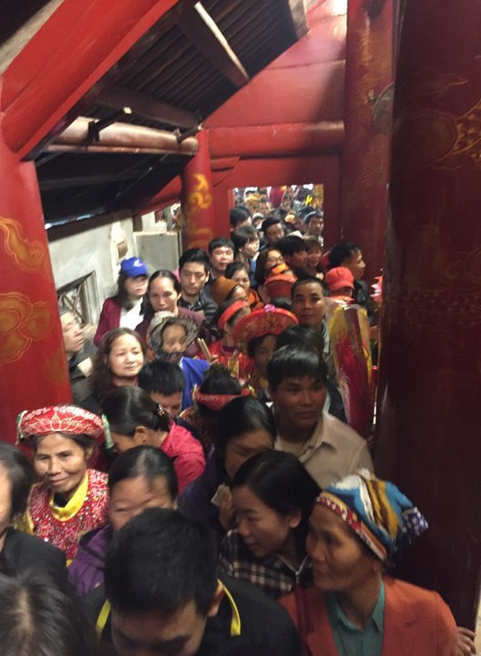 Từ 7h sáng, dân làng các thôn tập hợp thành các đoàn tế lễ chuẩn bị chờ tới lượt dâng lễ lên sân rồng, đền Thượng. So với mọi năm, lễ hội thưa vắng hơn hẳn. Theo dân làng một phần vì năm nay không cho cướp lộc.