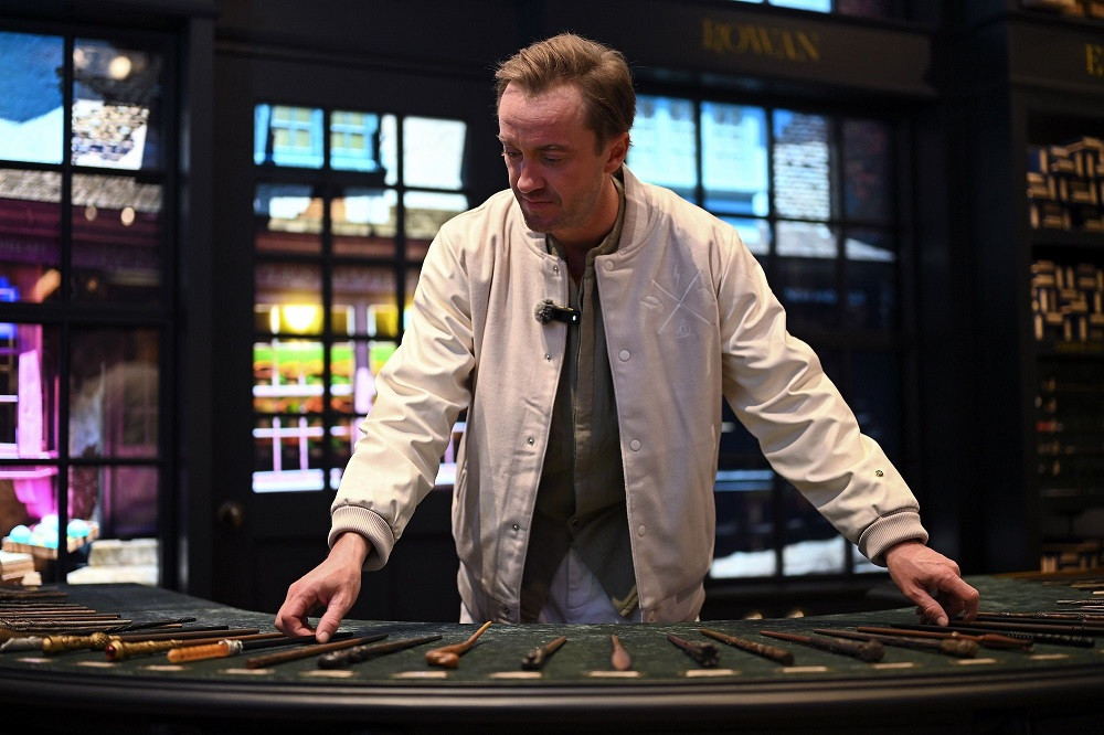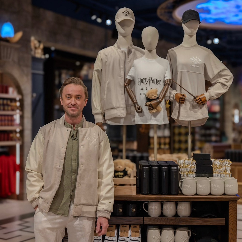 | Tom Felton ghé thăm một cửa hàng Harry Potter ở Chicago vào đầu tháng 4 vừa qua. |
