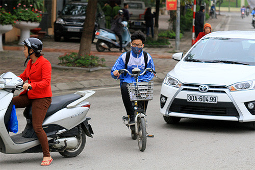 Không chỉ người điều khiển xe đạp điện, xe máy điện; nhiều bậc phụ huynh cũng dùng cách phủ áo mưa cho con em mình để tránh sự nhắc nhở, xử lý của cơ quan chức năng.