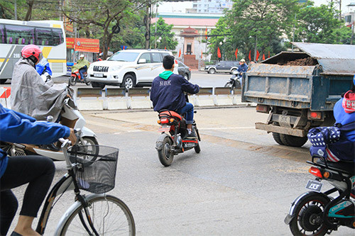 Khi thấy chốt của lực lượng cảnh sát giao thông, nhiều người đi xe đap điện quay đầu xe.