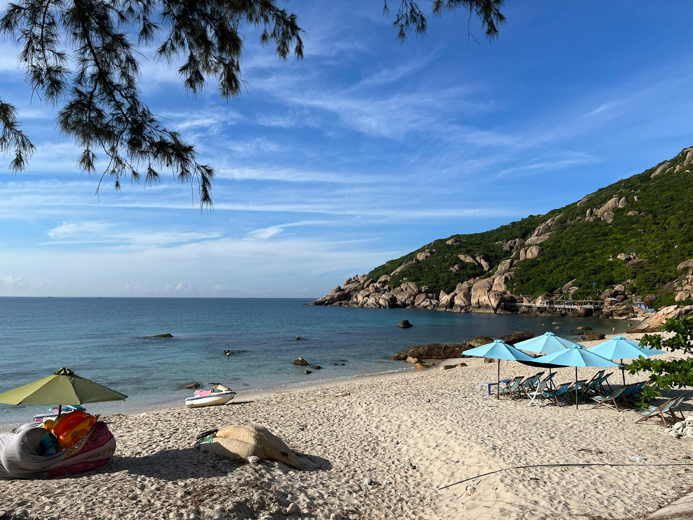 | Bãi Nồm thơ mộng trên đảo Bình Ba vắng khách khi bị cấm hoạt động du lịch trên đảo. Ảnh L.H |