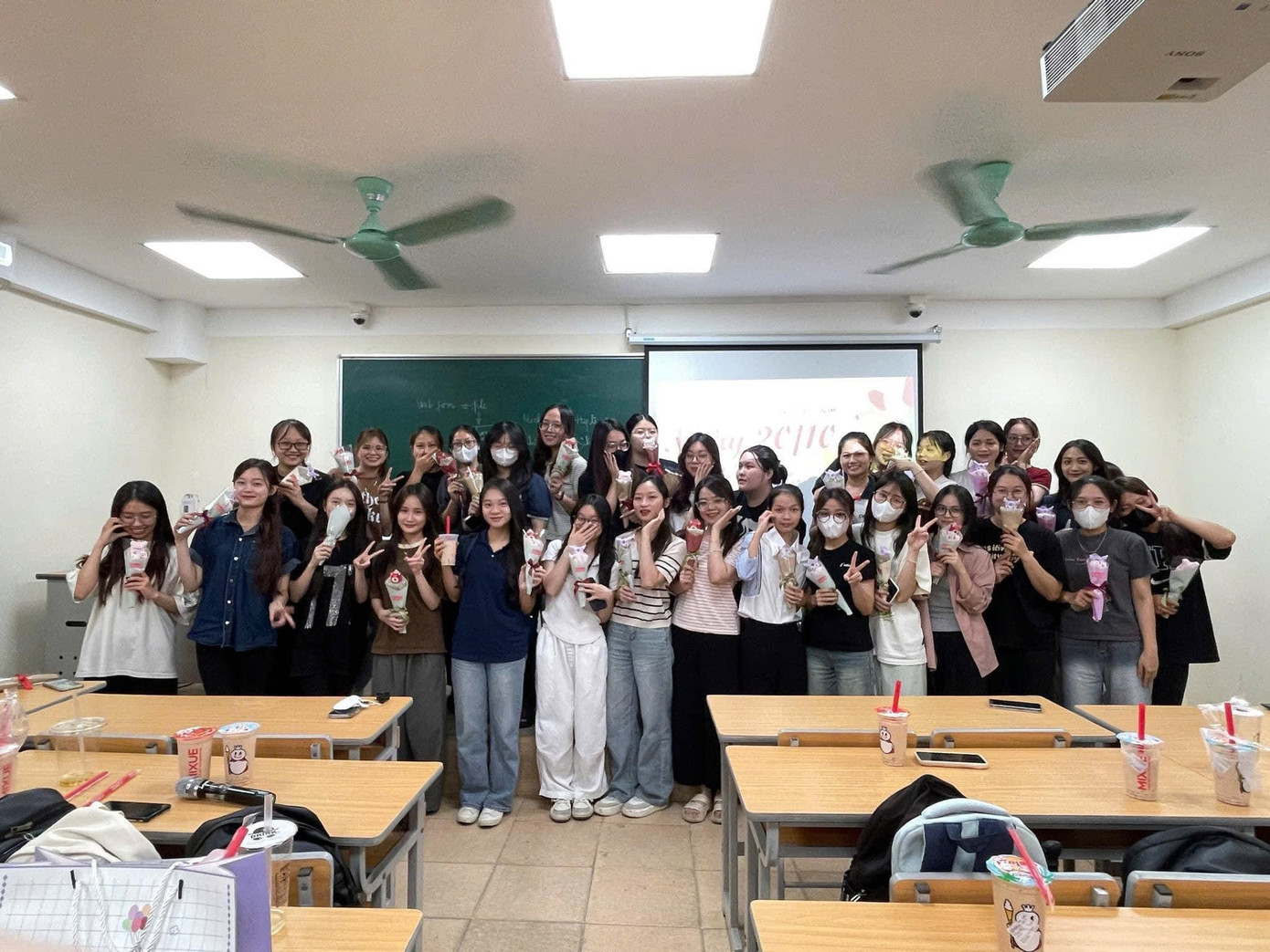 | Những bông hoa đặc biệt - món quà các nam sinh dành tặng các bạn nữ lớp 64K-ĐT1 và 64K-ĐT2 Trường Đại học Thuỷ lợi. |