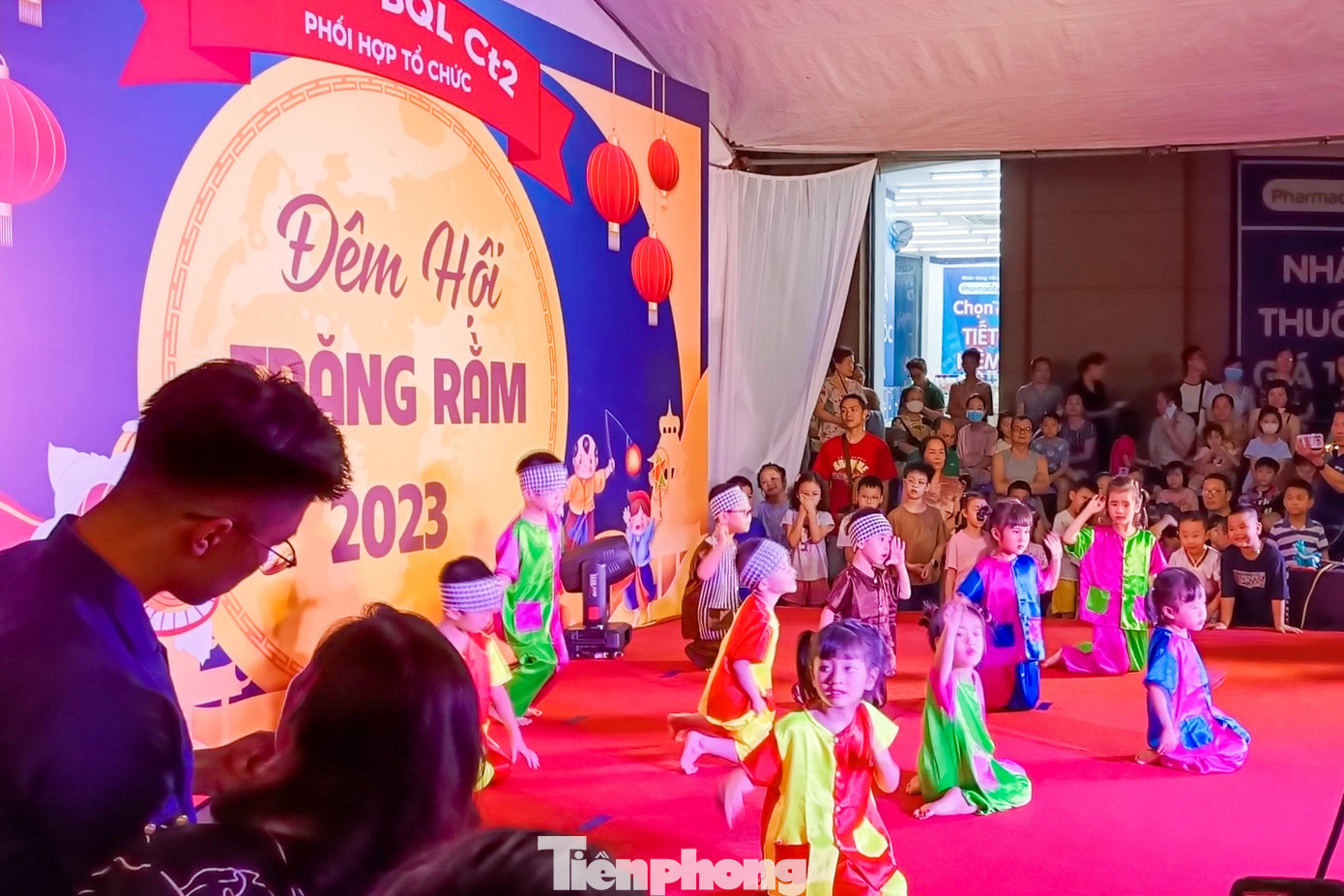 Từ 19h, tại nơi tổ chức Trung thu của tổ dân phố số 1 phường Thụy Khuê đã chật kín người và mâm cỗ, các mô hình đèn ông sao, máy bay, chim công, ô tô…, với đèn nhấp nháy đẹp mắt thu hút đông đảo trẻ em và người lớn cùng tham gia kết hợp bởi đội múa lân và tiếng trống rộn ràng.