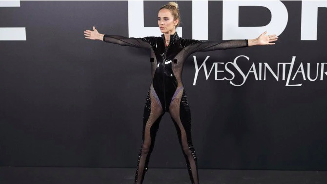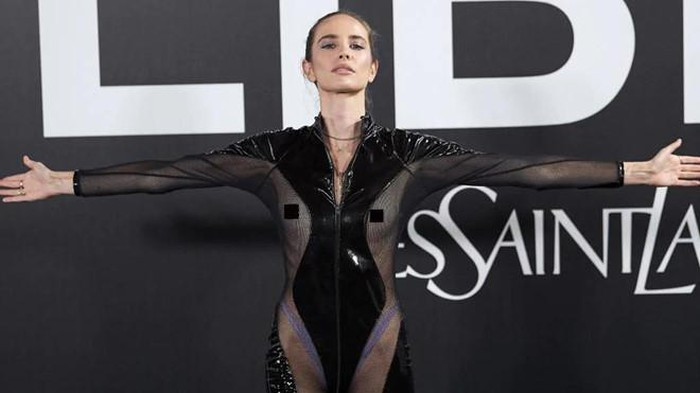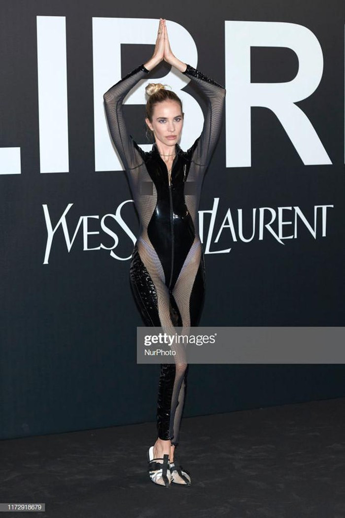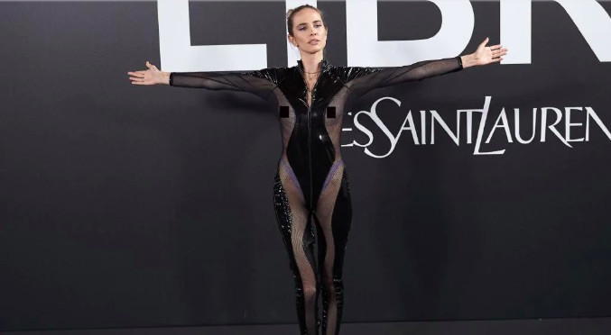 Người mẫu, ca sĩ Brisa Fenoy mặc bộ jumpsuit xuyến thấu lộ trọn vẹn vòng 1 nhận nhiều "gạch đá". Ảnh: Carlos Alvarez/Getty Images