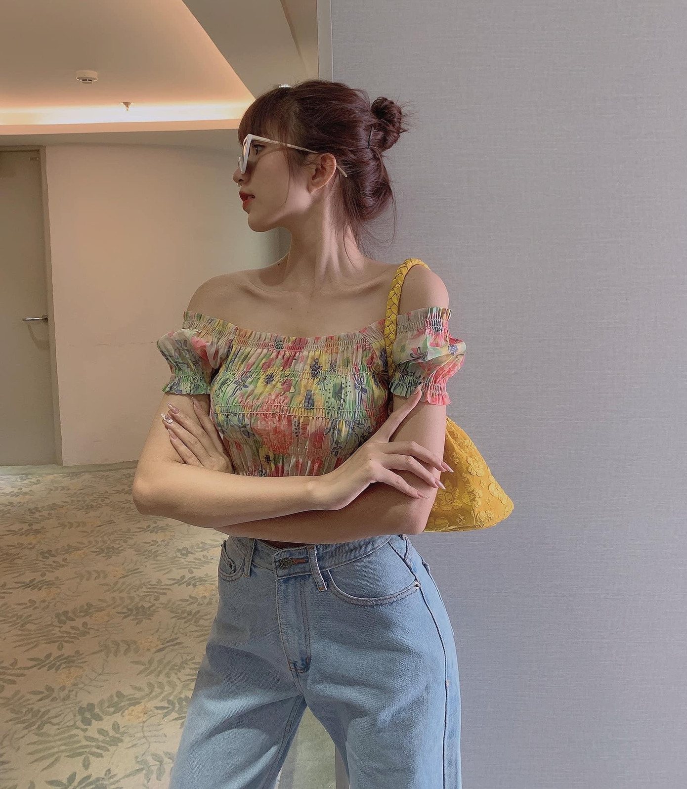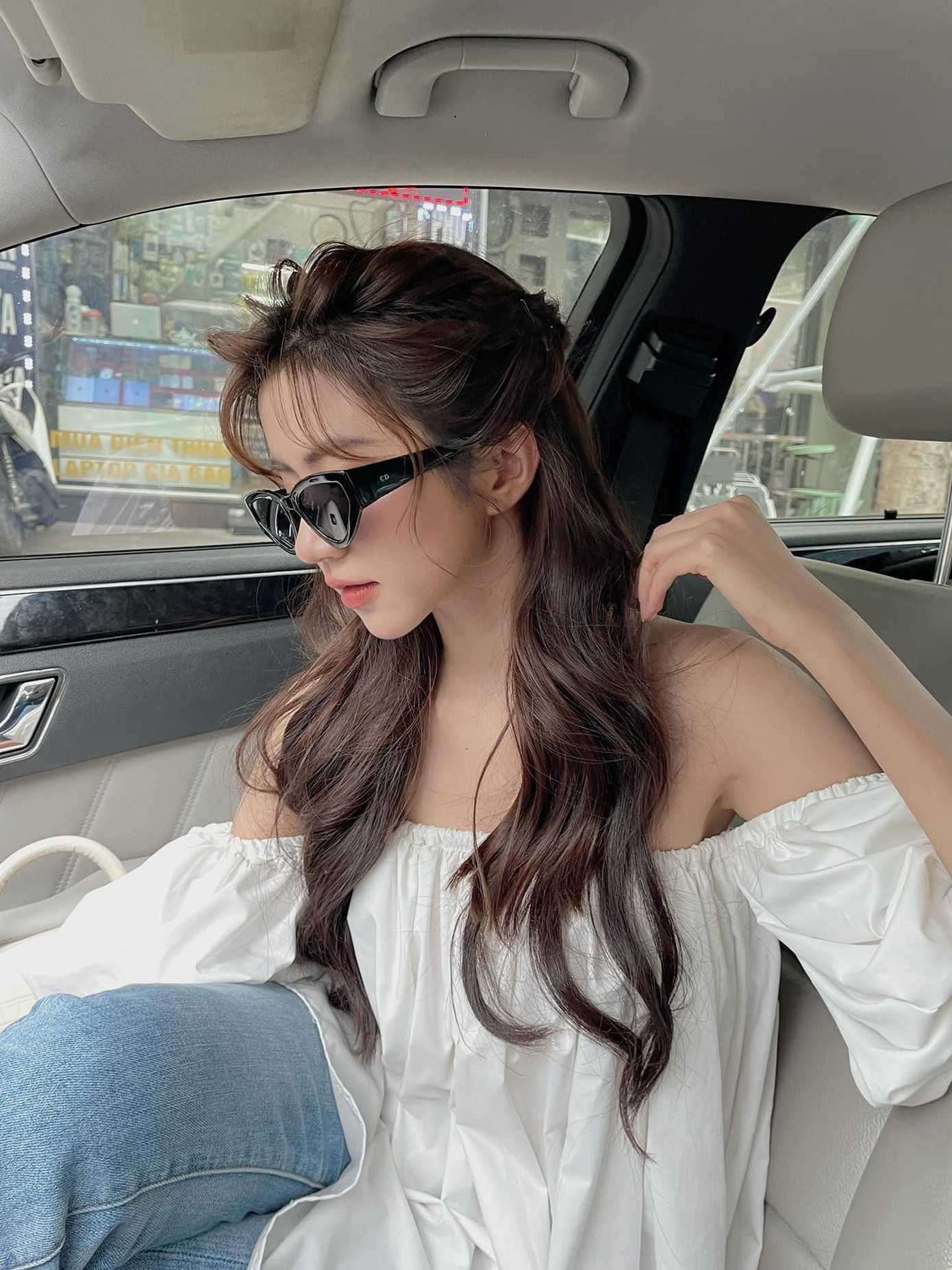 Quả thực là Ngọc Huyền sở hữu bờ vai móc áo thẳng băng với đường lượn vai mềm mại, kèm theo xương quai xanh nhô rõ nên mặc đồ hở vai vô cùng đẹp.