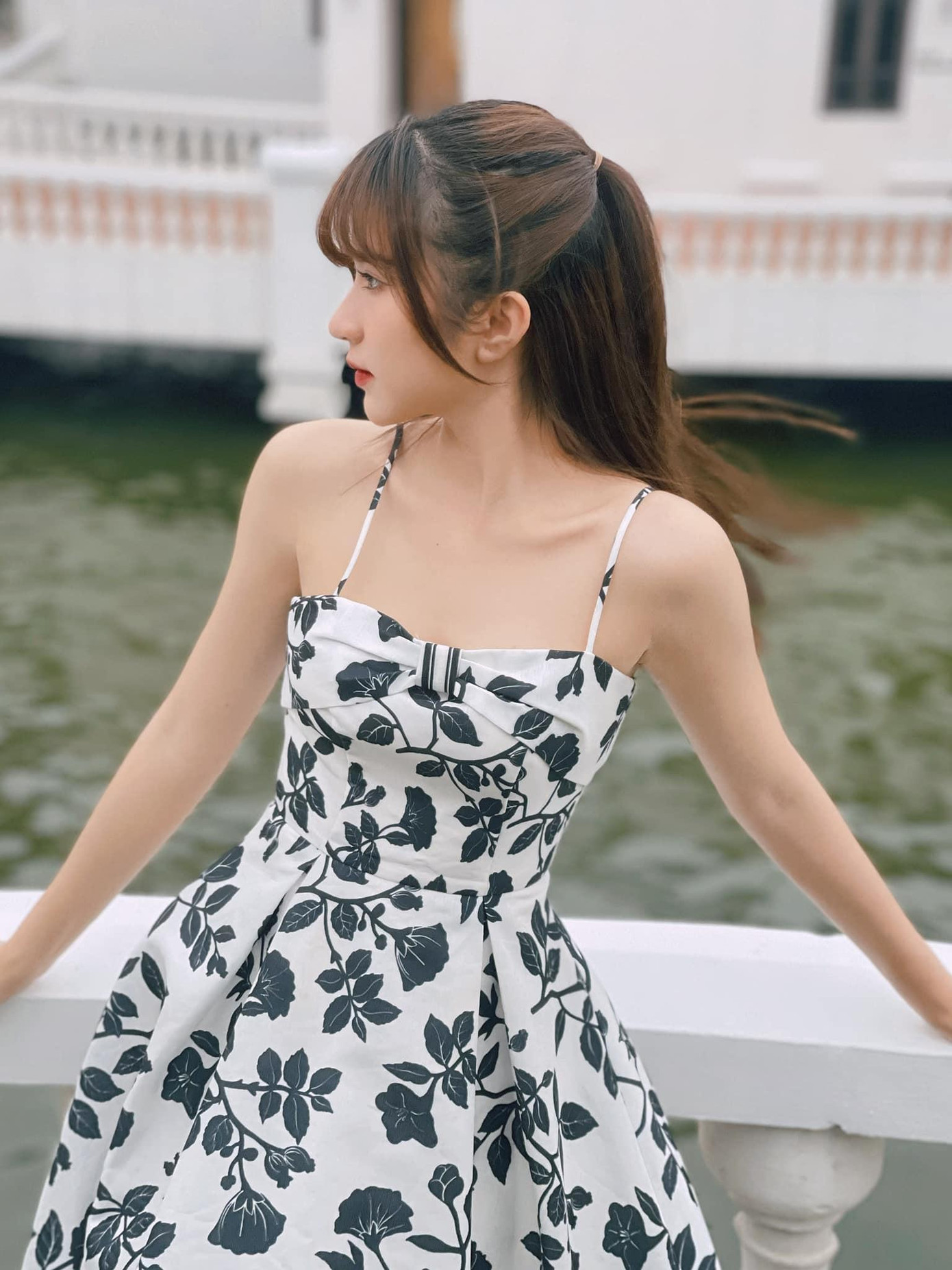 Nữ diễn viên luôn khéo léo biến tấu trang phục, như kéo trễ một bên áo xuống để khoe ra bờ vai mảnh dẻ, mịn màng. Bờ vai móc áo như Ngọc Huyền đang là mơ ước của nhiều cô gái, thậm chí nhiều người còn phải dùng miếng độn vai để có vai ngang đẹp đúng chuẩn.