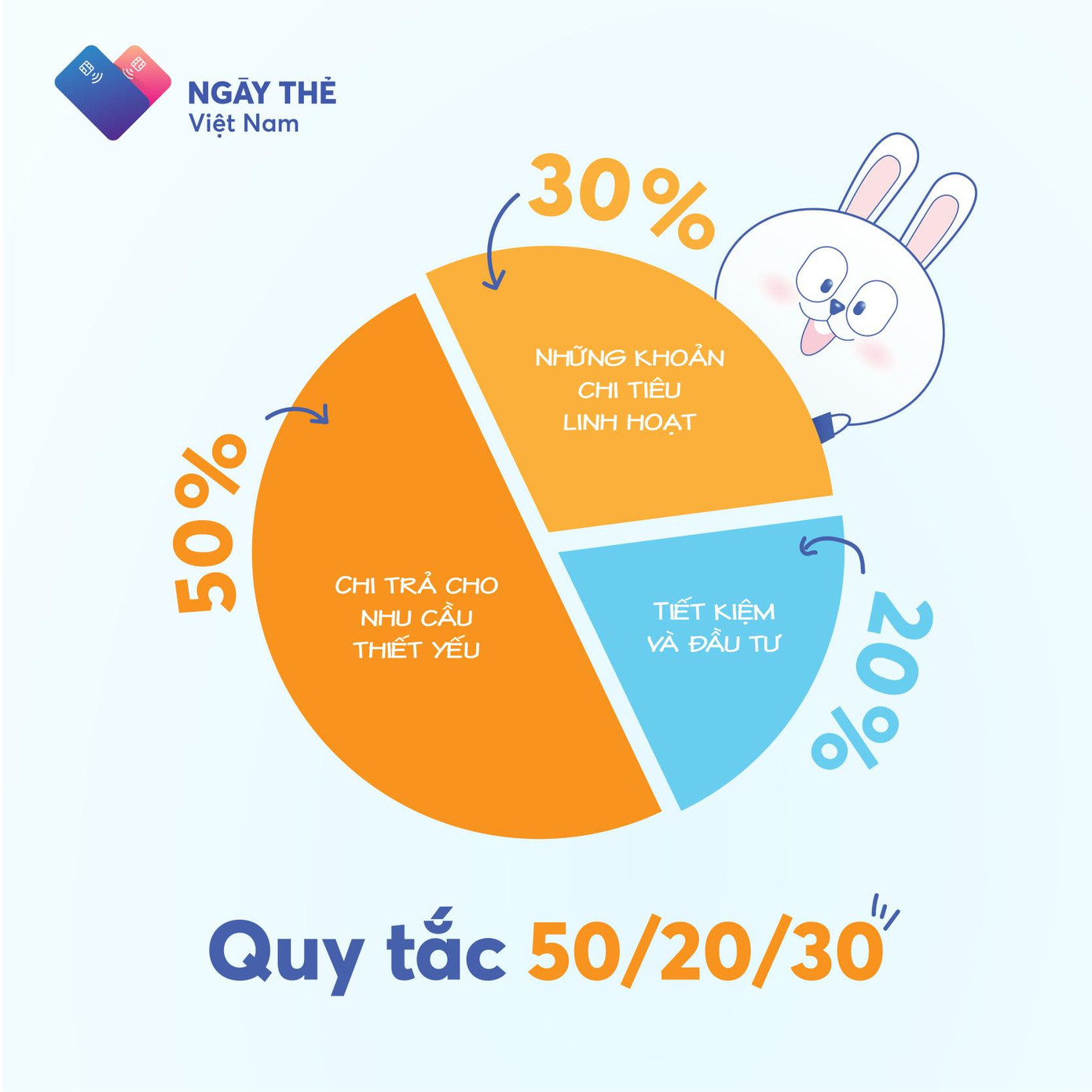 50%: Chi trả cho nhu cầu thiết yếu. Bao gồm những khoản chi tiêu cần thiết như tiền thuê nhà, nhu yếu phẩm, các tiện ích, bảo hiểm y tế, lãi suất ngân hàng...