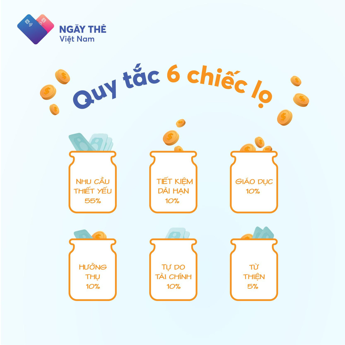 Lọ số 6 - Quỹ tự thiện - GIVE (5% thu nhập): Khoản tiền bạn sử dụng để làm từ thiện, giúp đỡ cộng đồng, người thân, bạn bè.