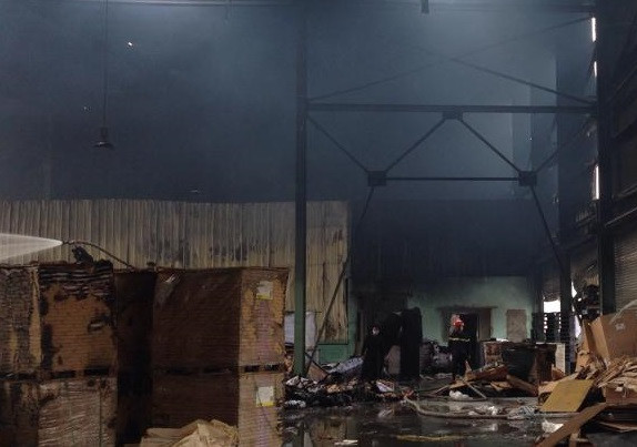 Trước đó, 21h ngày 18/10, đám cháy lan rộng và làm sập khu xưởng rộng vài nghìn mét vuông. Hàng trăm khối gỗ trong kho đang bốc cháy nghi ngút, tạo thành những cột khói cao.
