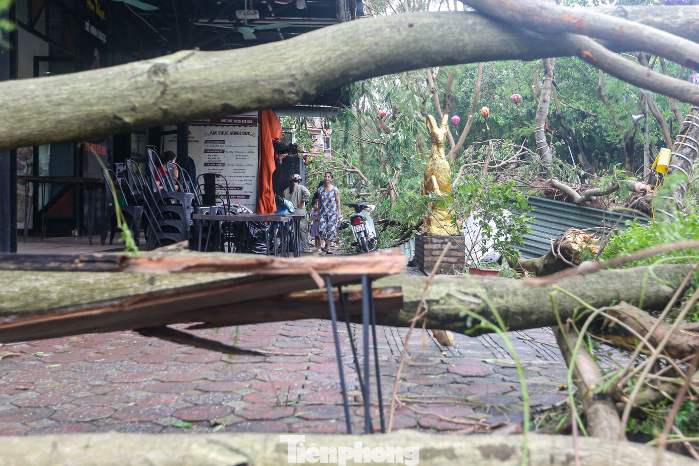| Ghi nhận của PV, khu đô thị Linh Đàm (quận Hoàng Mai), khu vực có mật độ dân cư dày nhất Thủ đô trở nên tan hoang, cây đổ hàng loạt, cuộc sống sinh hoạt của nơi vạn dân bị ảnh hưởng. |