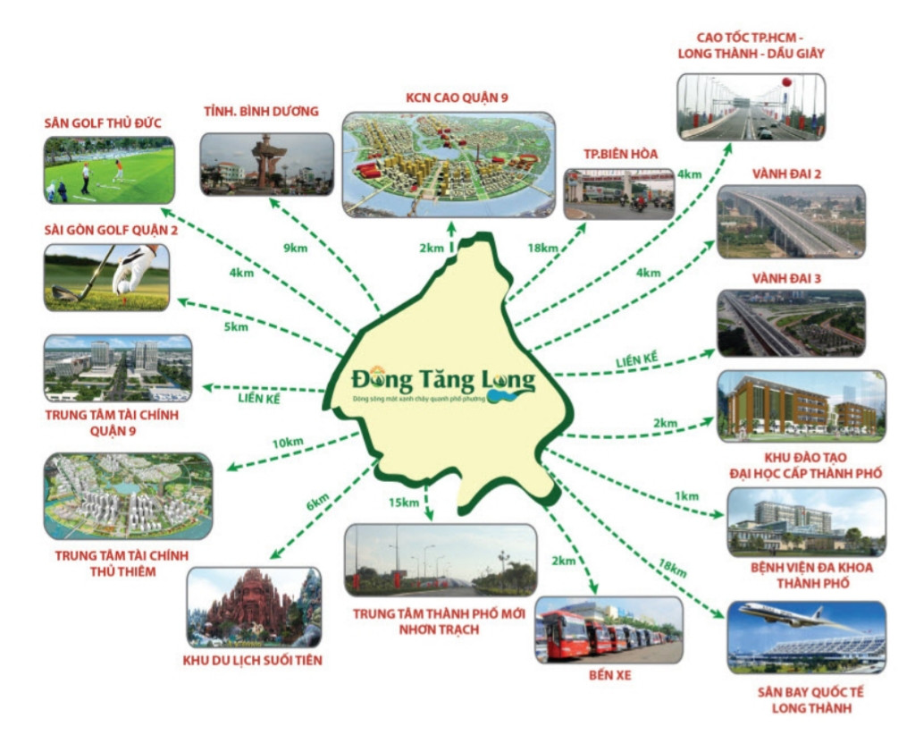 Hòa mình vào làn sóng đó, KĐT mới Đông Tăng Long, với quy mô lên đến 159,36ha do Tổng công ty Đầu tư Phát triển Nhà và Đô thị (HUD) làm chủ đầu tư, toạ lạc ở phường Trường Thạnh, Q.9 - Tp.HCM là vị trí vàng, vượng tài - đắc lộc, tiếp giáp với 4 tuyến đường huyết mạch: Nguyễn Duy Trinh (30m), Lã Xuân Oai (40m), Liên phường (60m) và Vành đai 3 (120m), còn là nơi giao thoa của 4 loại hình giao thông: Thủy - Bộ - Không - Sắt (Đường thủy: Cụm cảng sông Đồng Nai: Thị Vải, Cái Mép, cảng Cát Lái. Đường bộ: Đại lộ Đông Tây, Vành Đai 2, Vành Đai 3, Cao tốc Long Thành - Dầu Giây, Liên Phường, Nguyễn Duy Trinh, Lã Xuân Oai. Đường không: Sân bay Tân Sơn Nhất, Sân bay Quốc tế Long Thành. Đường sắt: Tuyến Metro Bến Thành - Suối Tiên - Nhơn Trạch đang triển khai). Nên từ KĐTM Đông Tăng Long cư dân chỉ mất từ 15p đến 25p để đi đến trung tâm Q.1, Q.2 hay Phú Mỹ Hưng… rất nhanh chóng và thuận lợi.