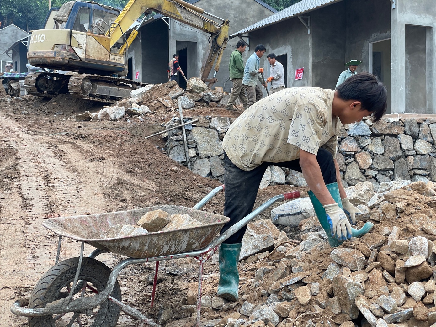 Sau hơn 2 tháng thi công khẩn trương, khu tái định cư mới khang trang đang dần hiện lên trên vùng đất mới. Về hạ tầng, đã cấp điện, nước đến công trường, đến nay đã thi công xong nền đường và đang thi công lớp móng cấp phối đá dăm, thi công cấu kiện đúc sẵn, cống thoát nước - kè; thực hiện đổ bê tông mặt đường được hơn 100m.