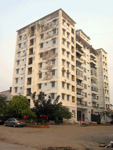 Là Tổ trưởng của nhà N6, N7, N9, N10 (với 250 hộ dân và 900 nhân khẩu), ông Nguyễn Viết Thắng cho biết, trừ khu N10 mới được đơn vị quản lý sửa chữa, còn lại nền nhà cả khu N6, N7, N9 đều sụt lún nghiêm trọng.