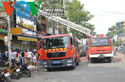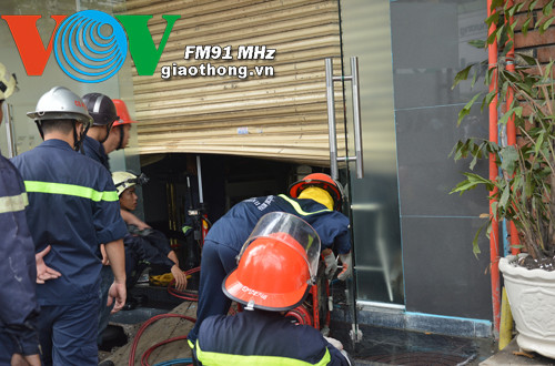Chưa đầy 5 phút sau, Cảnh sát PCCC quận 11 cùng 3 xe nước và 1 xe thang đã đến hiện trường tổ chức chữa cháy. Các chiến sĩ nhanh chóng mở cửa kính bên ngoài sau đó dùng con đội, đội cửa cuốn cứu một thanh niên bị ngạt khói bên trong đưa ra ngoài chuyển đi cấp cứu tại bệnh viện Chợ Rẫy.