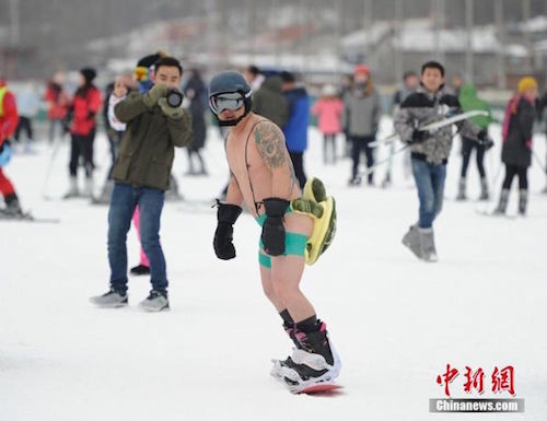 Một khu trượt tuyết ở tỉnh Cát Lâm, Trung Quốc đã thuê các cô gái trong trang phục bikini làm hình ảnh mở màn cho mùa nghỉ dưỡng cuối năm.