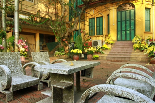 | Bộ bàn ghế trước cửa chính ngôi nhà có từ năm 1963, là nơi Đại tướng thường ngồi nghỉ ngơi, đọc sách báo, bàn việc nước… nay đã vắng bóng Người. |
