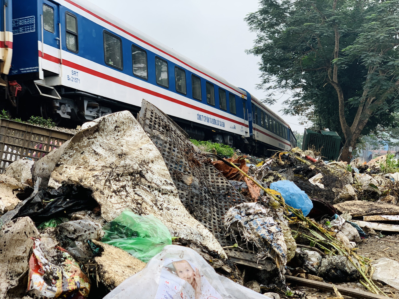 Tương tự, hai bên đường đoạn qua tổ dân phố 17, rác ngập tràn, kéo dài cả vài trăm mét. Mỗi khi đi qua, người dân phải “nín thở”.