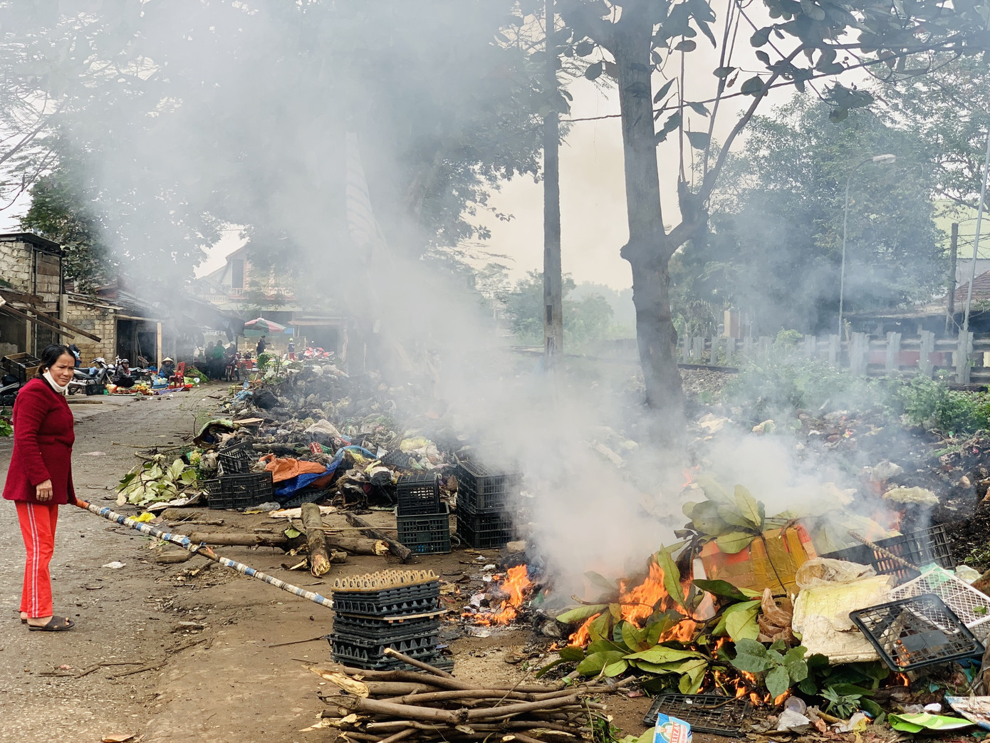 Nhiều người dân vẫn buôn bán sát ngay cạnh đống rác.