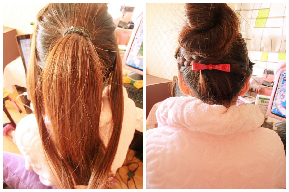 Dùng ghim cố định lại phần tóc thừa, vậy là đã có một kiểu tóc mới nữa.