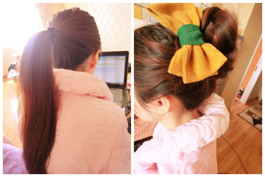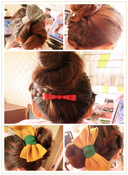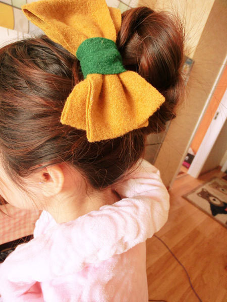 Thêm nơ to bản để mái tóc thêm nổi bật.