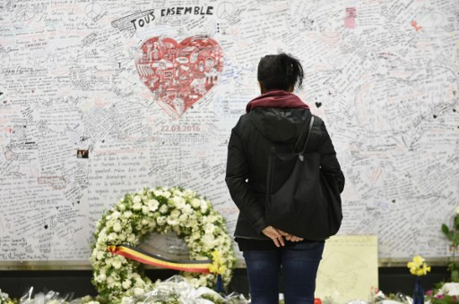 Hôm 22/3, một năm sau vụ khủng bố kép ở Brussels, Bỉ, một người đứng lặng im giữa khu tưởng niệm những nạn nhân thiệt mạng trong vụ tấn công đẫm máu khiến 32 người chết.