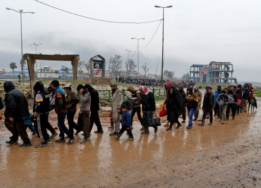 Các gia đình sơ tán khỏi Mosul, Iraq, nơi đang diễn ra giao tranh ác liệt giữa quân chính phủ và tổ chức Nhà nước Hồi giáo tự xưng (IS) hôm 23/3.