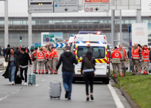 Các nhân viên cứu hộ có mặt ở sân bay Orly, Paris, Pháp hôm 18/3, sau khi lực lượng an ninh bắn chết người đàn ông cướp súng của một binh sỹ đứng tại sân bay.